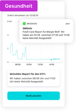 Basierend auf den individuellen Verbrauchsdaten werden ungewöhnliche Verbrauchsmuster erkannt und Angehörige informiert.